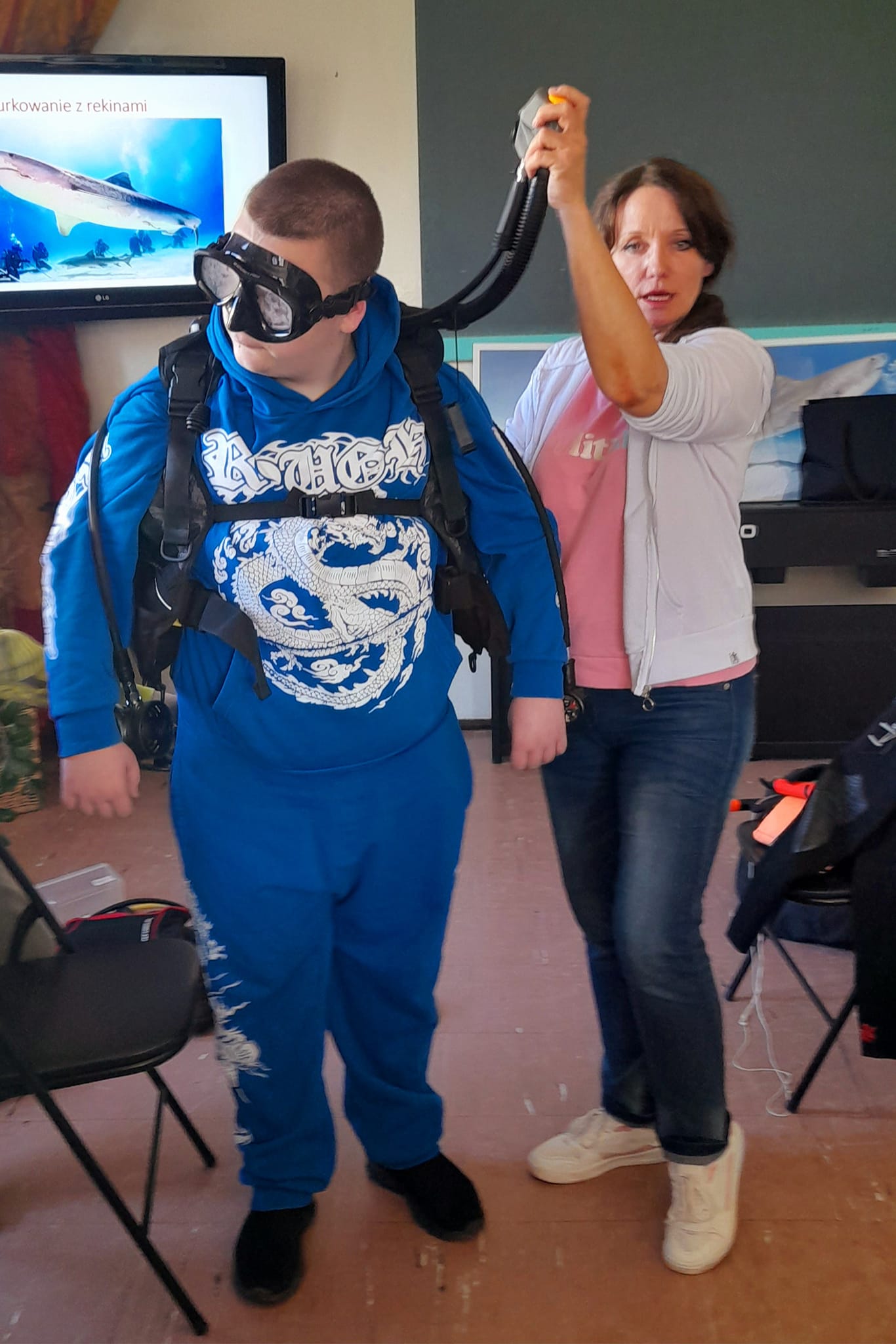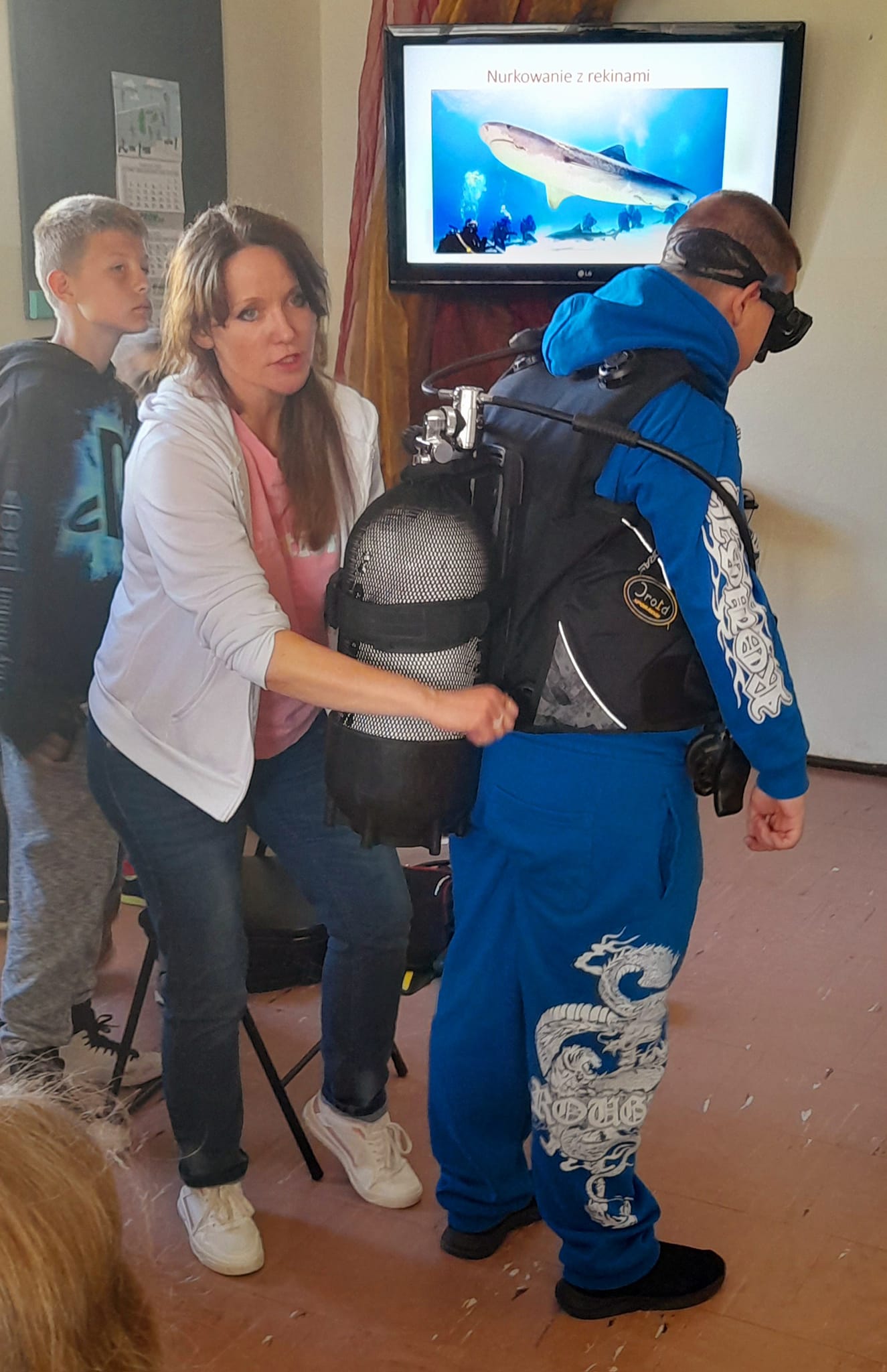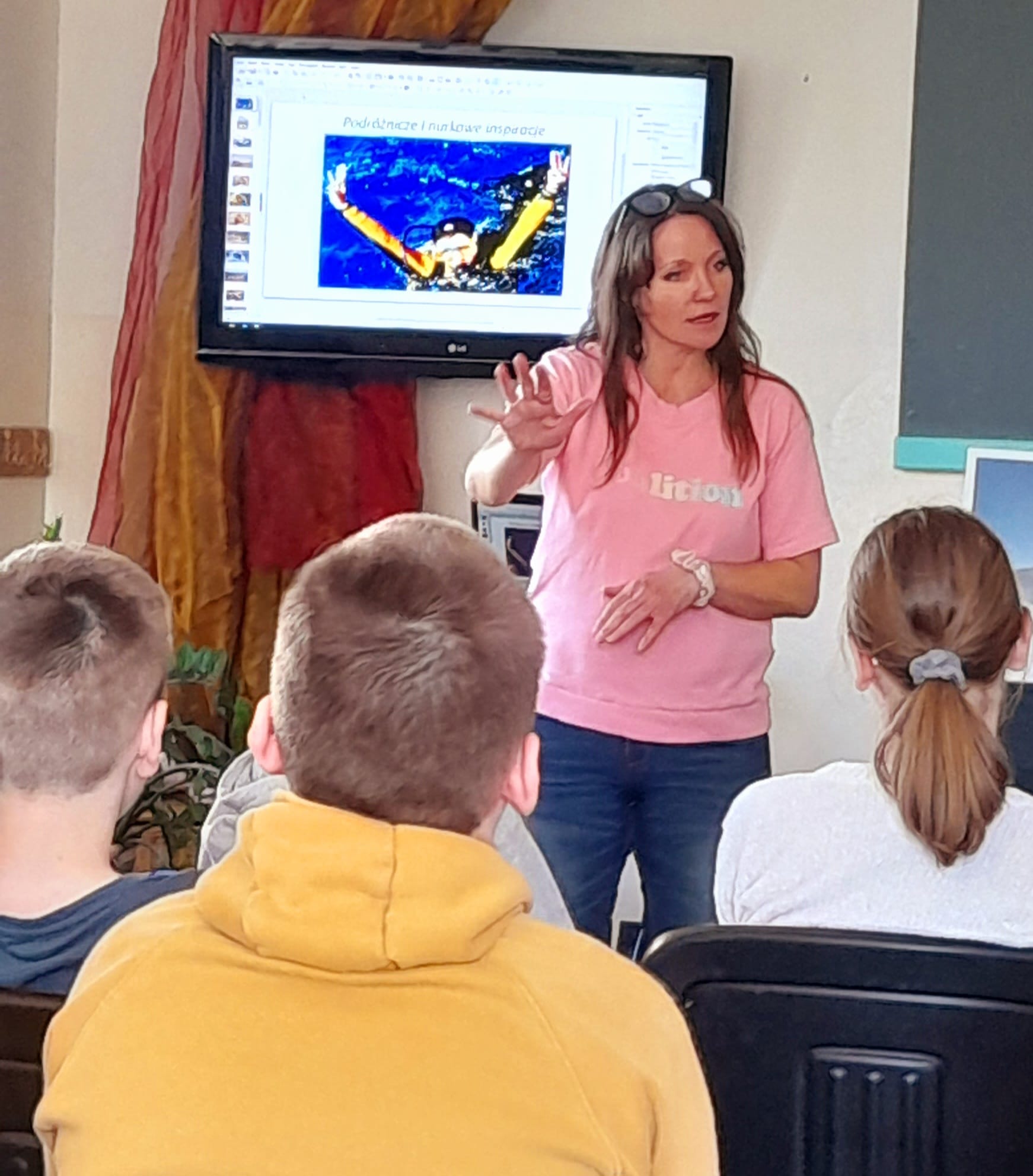 8 maja odwiedziła nas młodzież ze Szkoły Podstawowej nr 3 oraz słuchaczki Uniwersytetu III Wieku. Z wielkim zainteresowaniem słuchali Justyny Szumacher, która opowiadała o technice nurkowania i o swojej wielkiej miłości do rekinów, z którymi wielokrotnie spotykała się w głębinach.