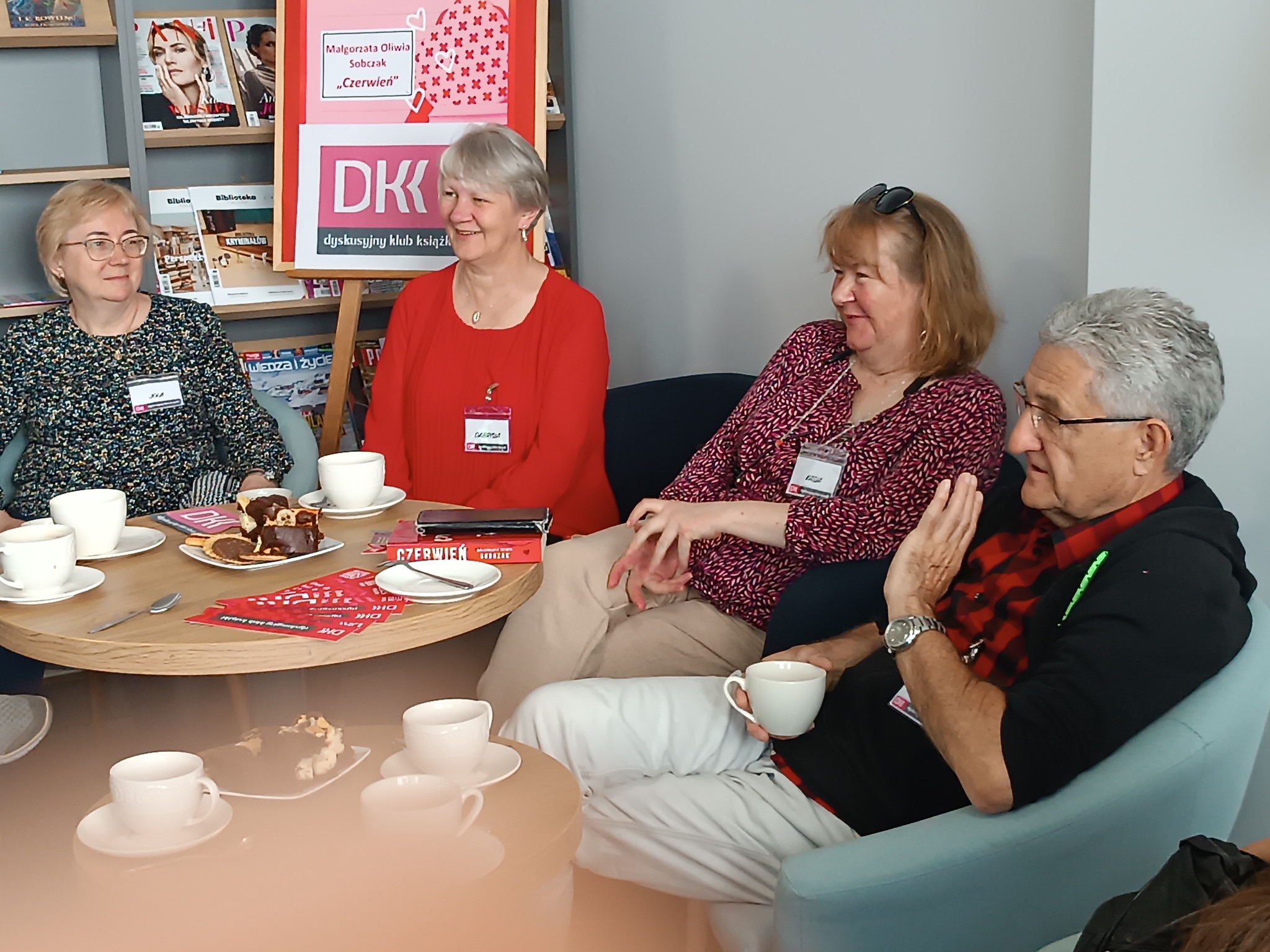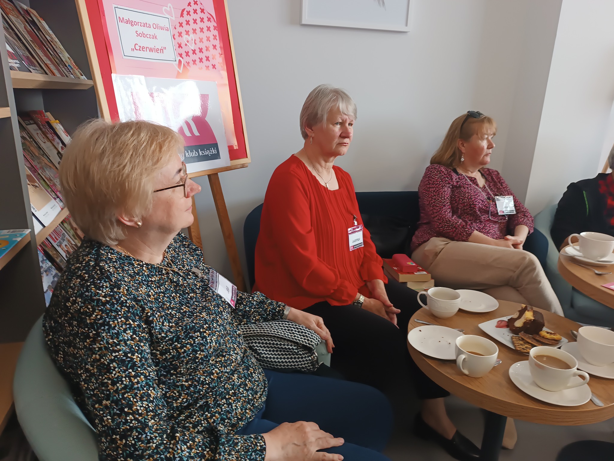 Rozmawialiśmy o książce Małgorzaty Oliwii .Sobczak „Czerwień”. Jest to pierwszy tom z serii „Kolory zła”. Uczestnicy spotkania podkreślali, że autorka zaskakuje i zachwyca, że łączy elementy kryminału, thrillera psychologicznego i dramatu społecznego w sposób niezwykle umiejętny, tworząc historie pełne napięcia i refleksji.